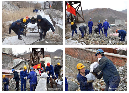 中色紅透山團(tuán)員青年回收礦斗運輸過程中灑落的礦石