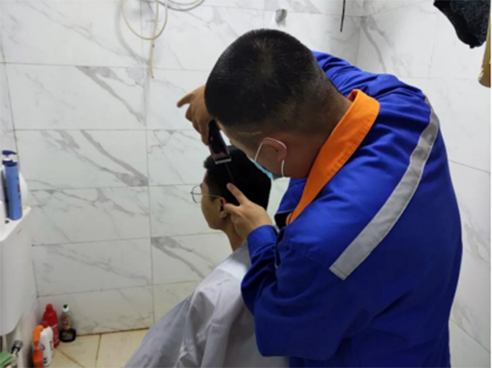 中色十五冶迪茲瓦采礦項目部團(tuán)支部為項目員工理發(fā)